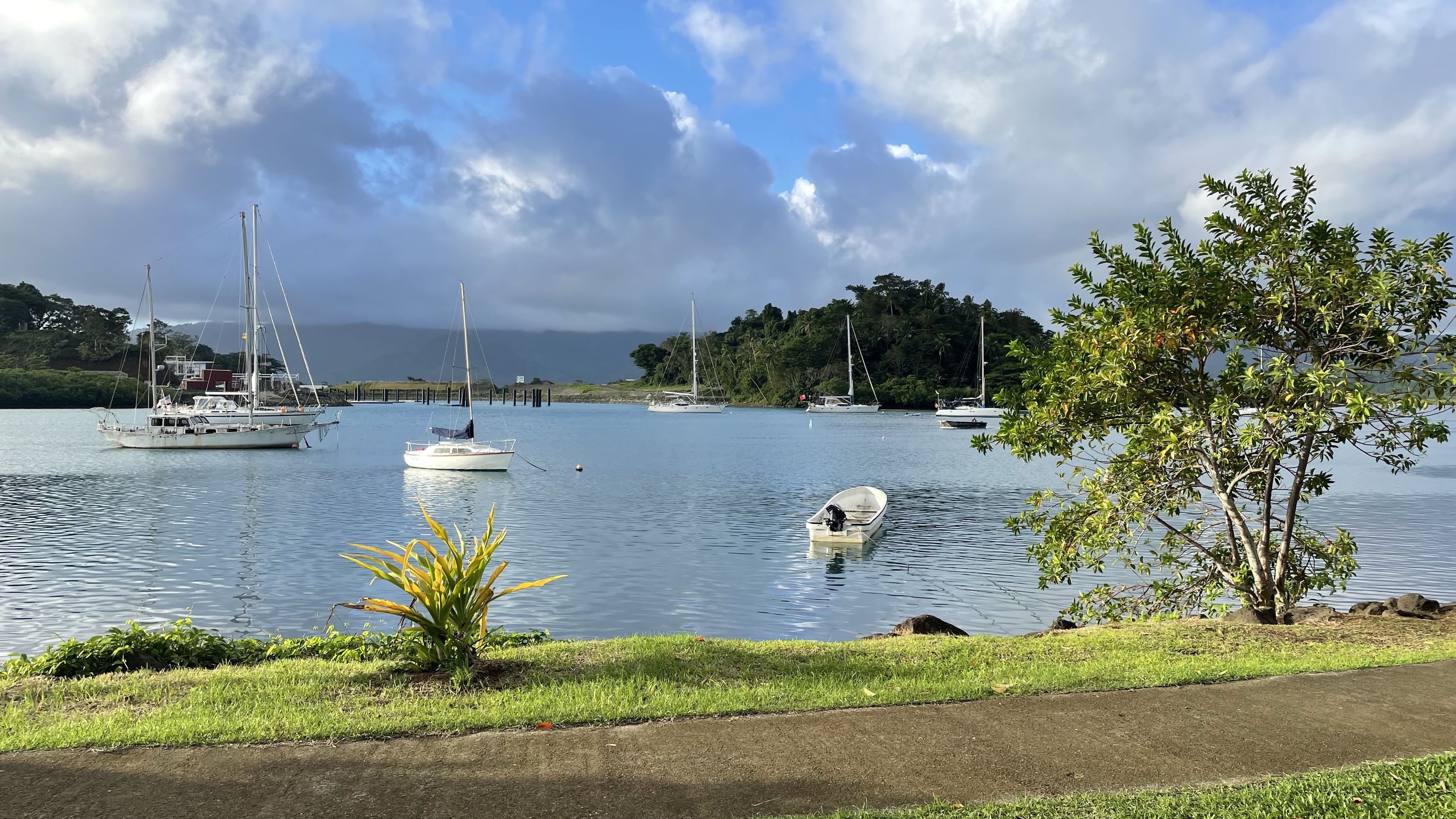 Efter en magisk solnedgång kom vinden tillbaka och vi kunde segla igen men nu med revade segel för att hålla nere farten, vi ville inte komma fram mitt i natten. Efter drygt sju dagar styrde vi på morgonen den 1 juli in mot Savusavu och fick en boj att förtöja vid i Copra Shed Marina. Senare på dagen kom först två tjejer från hälsovårdsmyndigheten och tog snabbtest för Covid. Proven var negativa och då kunde en liten delegation från tull, immigration och biosecurity komma ombord. Vi hade varit lite oroliga för att bli av med mat eftersom det finns restriktioner för vilka produkter man får föra in i landet. Allt gick bra, kanske för att det nu var fredag eftermiddag och de ville hem. På bara tjugo minuter var alla papper färdigsskrivna, undertecknade samt passen stämplade och vi blev varmt välkomnade till Fiji.