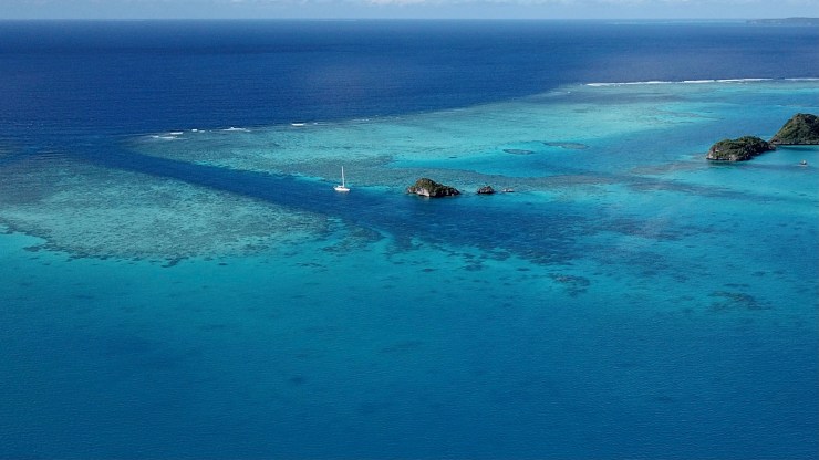 Vi flyttade ut till de yttre öarna och ankrade på bara 3 meters djup bland de toppiga små öarna. Tyvärr har ju drönaren råkat ut för en olycka så bilderna blir inte bra men ni kanske i alla fall kan få en uppfattning om hur det såg ut. Här badade vi och paddlade på vår SUP. Vi tog jollen till små öppningar bland öarna för att snorkla. När tidvattnet vänder in blir strömmen jättestark i dessa små öppningar och det var kul att ta sig ut längs kanten och sedan kasta sig ut i det strömmande vattnet. Man blev som ett barn i en vattenlekpark. Vi tog även jollen ut i passet för att dyka. Proceduren upprepade sig och Cecilia släppte av Jocke och Olivia så långt ut i passet som hon vågade för eftersom det blåste var vågorna rätt höga och vilda därute. Olivia och Jocke fick en snabb och kul resa in längs passets botten bland hajar och mängder av andra fiskar.