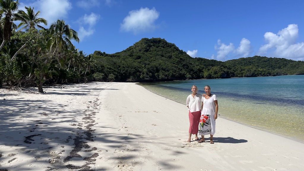 Någon dag senare seglade vi till Fulaga. Vilket drömställe! Helt klart och turkost vatten, små toppiga vulkanöar inne i atollen och gulliga små palmer som stack upp överallt på öarna. Vi tog oss in till byn, på en underbart fin stig utan djungelkaos. Däremot var det galet mycket mygg så jag var säker på att jag skulle få malaria. I alla fall, i byn blev vi väl mottagna och fick en värdfamilj. Fina Lucy och hennes familj tog så bra hand om oss, visade oss runt och bjöd oss på te, färska kokosnötter och mat. Hon hade alltid med sig sin bästa kompis Elina, dom två var så roliga och skämtade massor. Det är så roligt att man kan komma så bra överens med någon på andra sidan jorden som lever ett helt annat liv, så långt från våra liv i Sverige som det går att komma. Klyscha, jag vet, men så kändes det verkligen. Vi trivdes väldigt bra här.