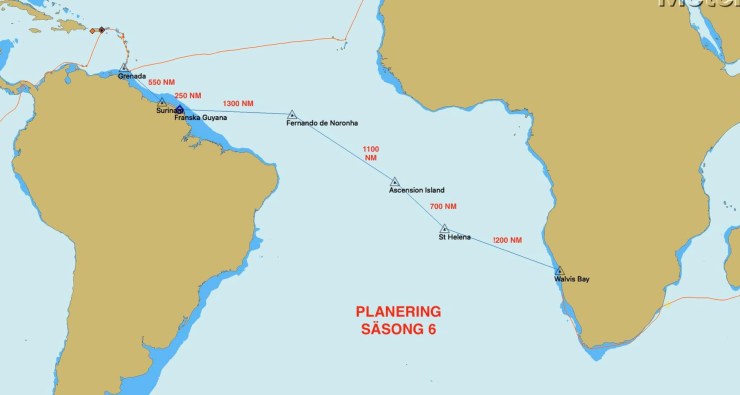 Efter att ha firat nyår i Kapstaden seglade vi till Namibia och sedan vidare över Atlanten. Vi stannade på bland annat St Helena, Ascension och Fernando de Noronha. Målet för säsongen var Grenada där vi seglade runt en tid innan vi lade upp båten och flög hem. När vi närmade oss Grenada korsade vi vårt spår och har därmed seglat jorden runt. Vi ser fram emot att vara hemma i Sverige under sommaren. Det var längesedan sist.
